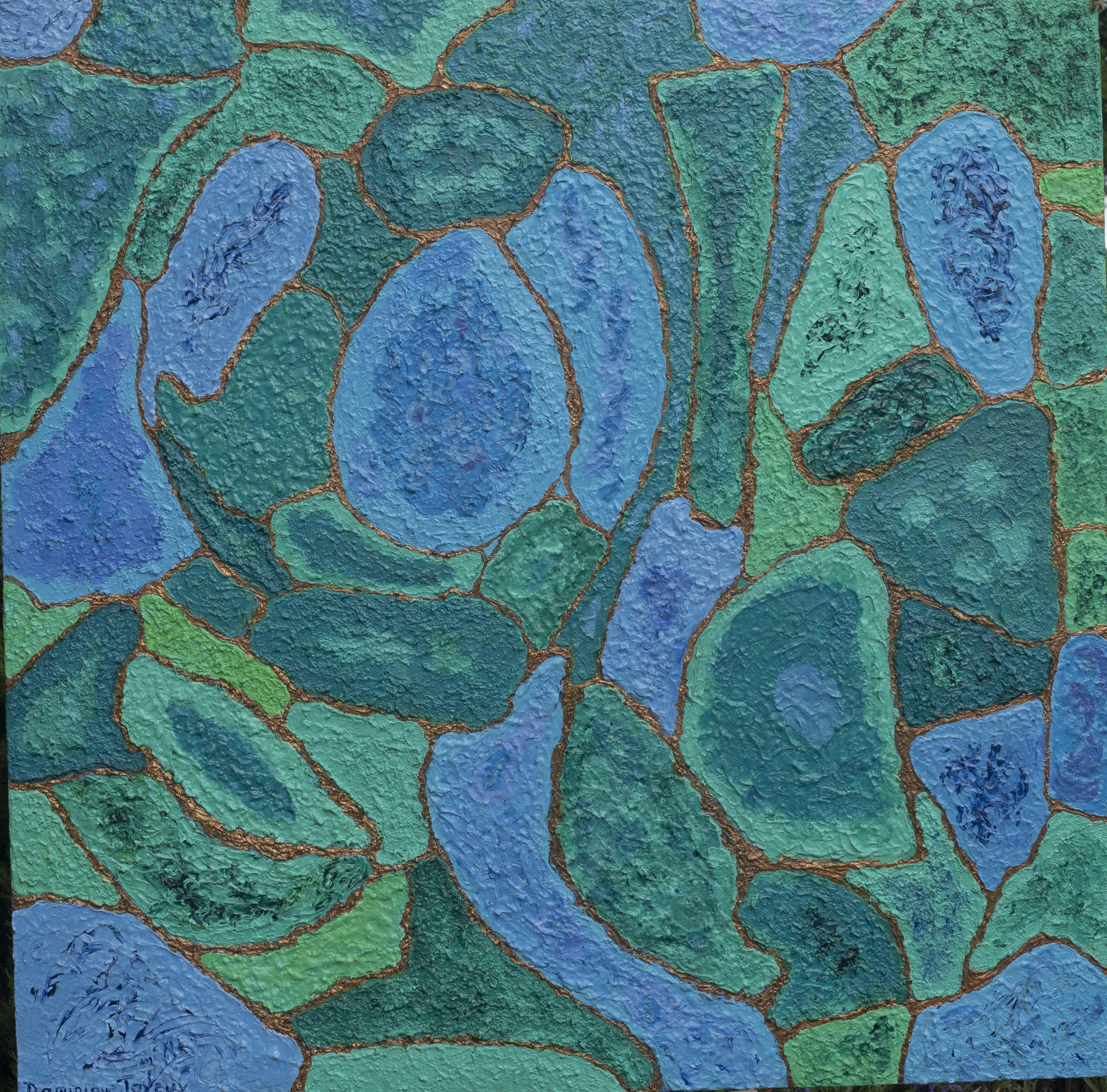 MEMBRANES VIVES HUILE SUR RAPHIA TRICOTE MAROUFLE SUR TOILE 120 60